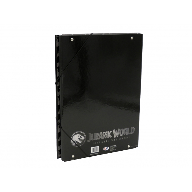 CARACTERÍSTICAS: Está fabricada con tapa dura de cartón de 2 mm de espesor para que sea más resistentes y duradera. Forrada en papel con diseño de Jurassic World. Ideal para guardar en ella todos tus documentos de forma ordenada y segura. Cierre mediante gomas elásticas. Medidas 35,5 x 25 cms