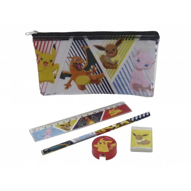 CARACTERÍSTICAS: El estuche tiene una regla, una goma de borrar, un sacapuntas y un lápiz. Artículos ideales para su uso en el colegio