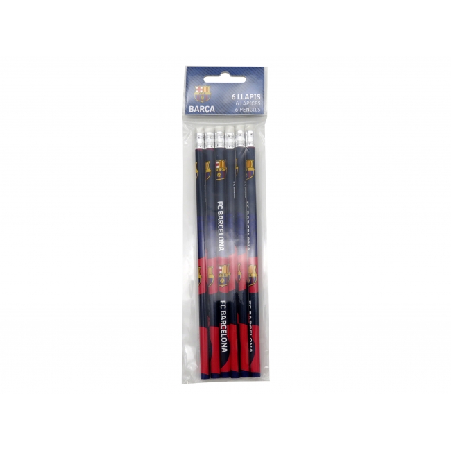 CARACTERÍSTICAS: Contiene 6 lápices con goma de borrar diseñados con elementos icónicos del club blaugrana.