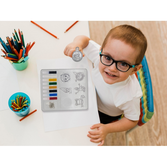El set contiene 6 adornos, 8 colores y 6 llaveros.