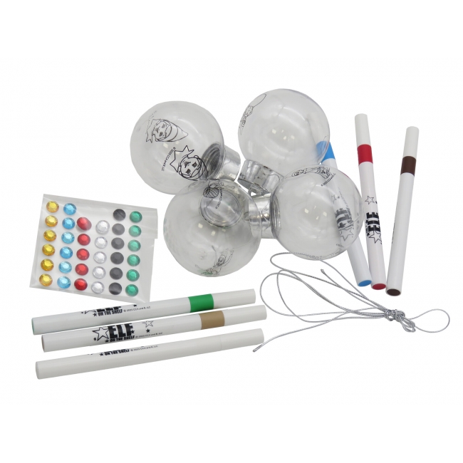 Contiene 4 bolas, 6 rotuladores, Curea y gemas para decorar.