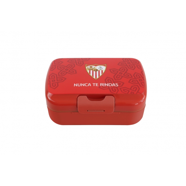 CARACTERÍSTICAS: Esta sandwichera oficial decorada con el escudo del Sevilla, cuenta con un cierre de seguridad para evitar derrames de su contenido.