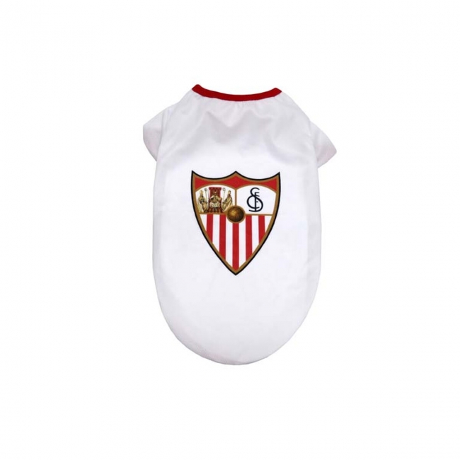 CARACTERÍSTICAS: Cómoda camiseta ajustable para que compartas afición sevillista con tu mascota. Realizada con materiales transpirables de alta calidad.