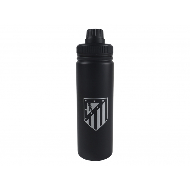 CARACTERÍSTICAS:Botella con el escudo del Atlético. Fabricada en acero inoxidable de la más alta calidad y resistente al óxido, sin BPA ni ftalatos. Mantiene el sabor y la pureza. Con boquilla para su fácil uso y tapón a rosca de gran anchura.